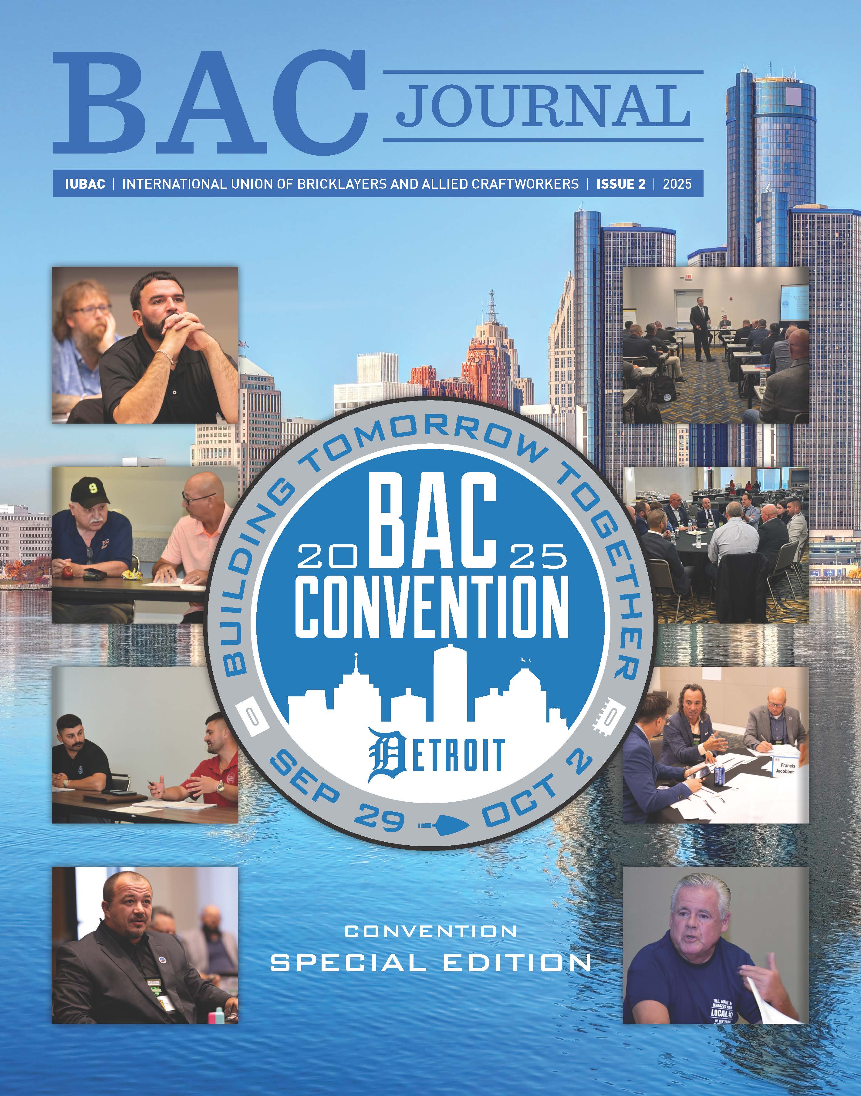 BAC Journal is a quarterly publication featuring members at work, latest news on member benefits, training programs, safety and health, legislative and political issues, member services, and so on.